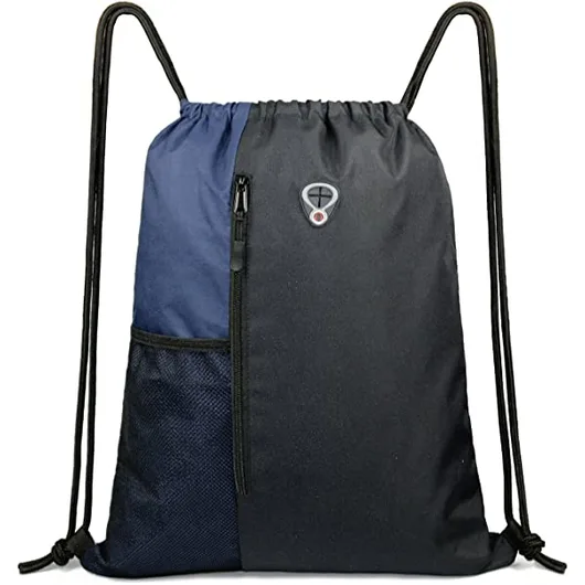Drawstring Backpack Sports Gym Bag for Women Men Children Large Size with Zipper and Water Bottle Mesh Pockets